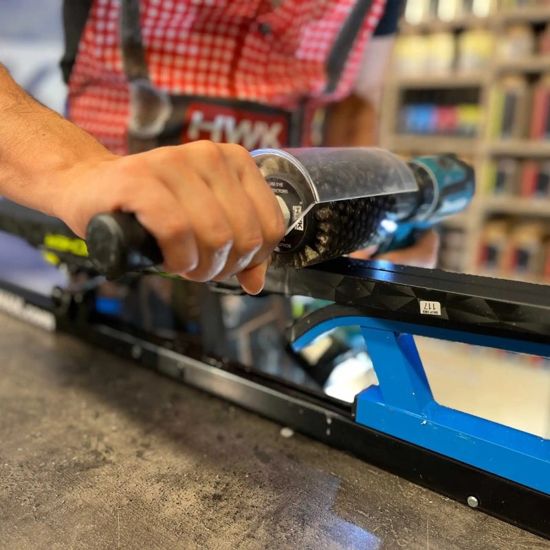The steel rotor brush is suitable for mechanical cleaning of contaminated skis and for brushing out extremely hard waxes. ATTENTION: Work with little pressure and revolutions (max. 1000 rpm). WEAR SAFETY GLASSES!!! Width 100mm